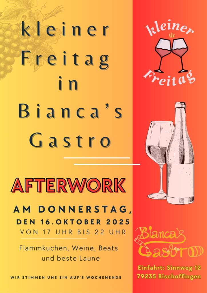 Weiter geht’s am Donnerstag, den 16.10.2025 AFTERWORK in BIANCA’S GASTRO