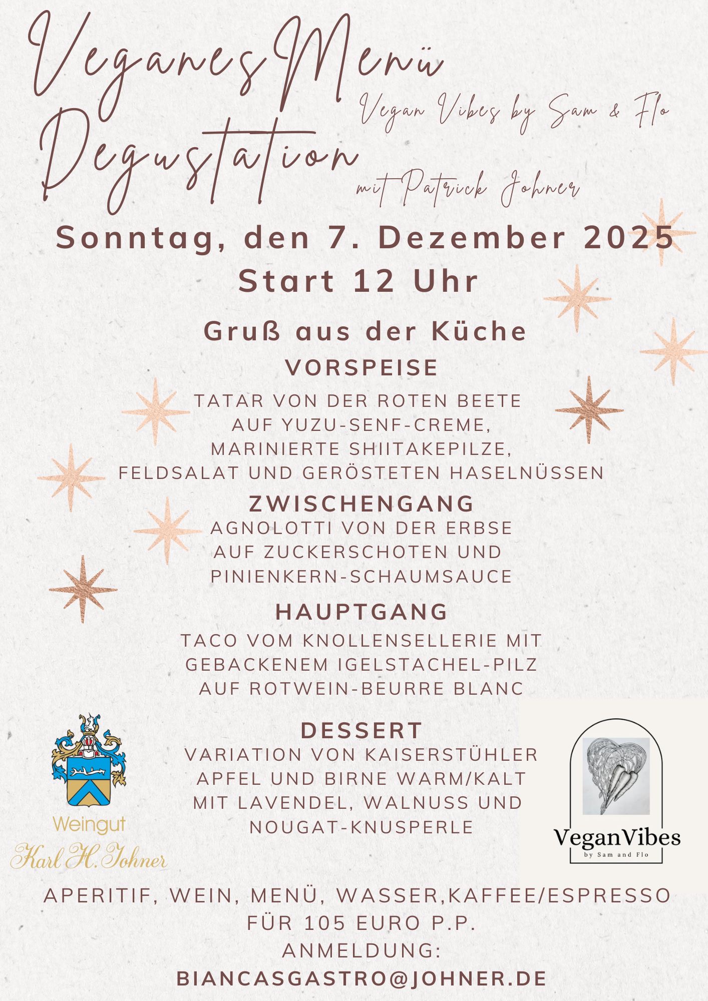 VEGANES MENÜ gleich hier anmelden unter: biancasgastro@johner.de